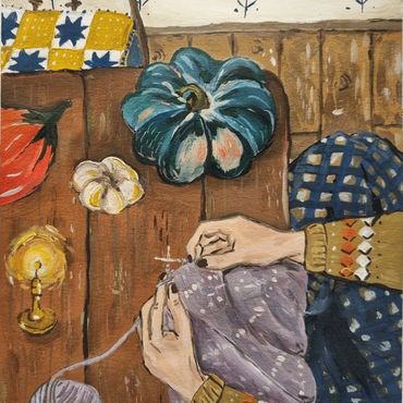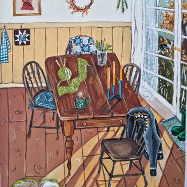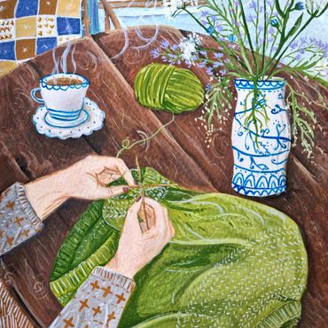 I paint little scenes inspired by fibre arts and the ordinary joys of home - I hope they bring you joy and a sense of nostalgia.